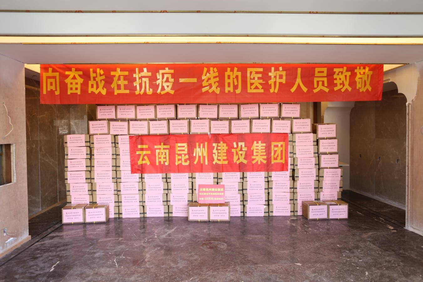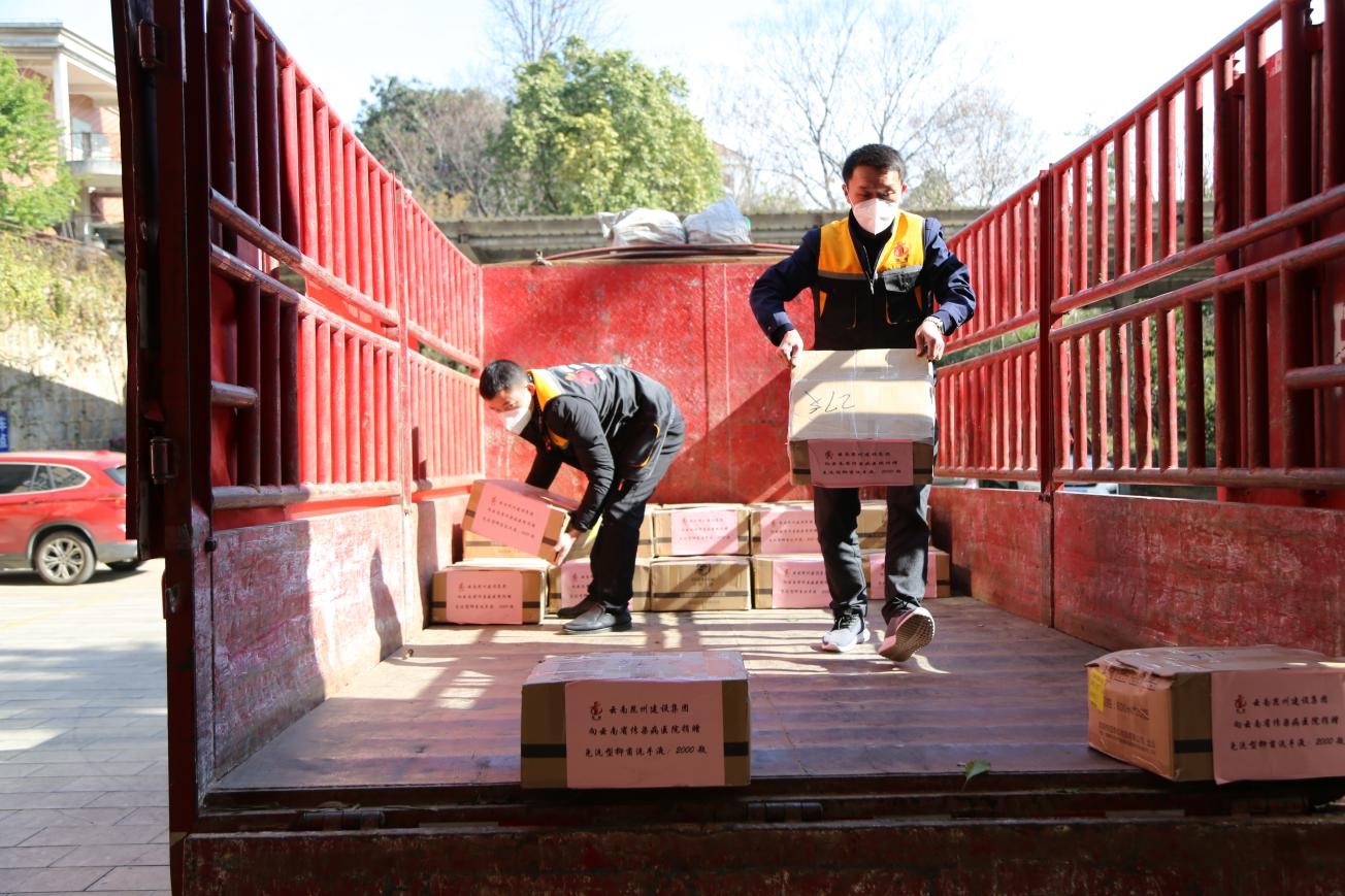 2月14日上午9:30,昆州集團員工代表出發(fā),向云南省傳染病醫(yī)院運送物資。