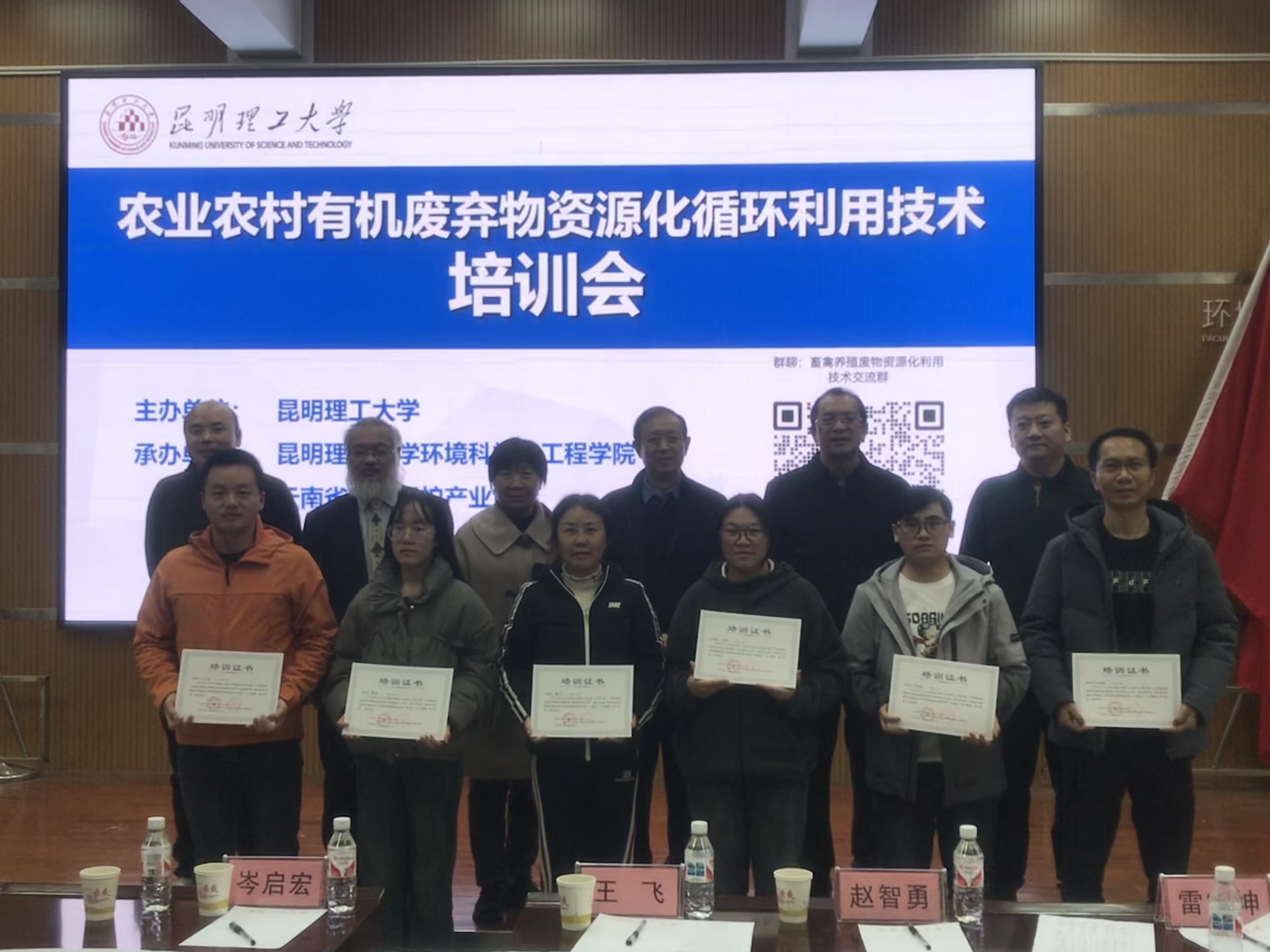2024年11月30日,由昆明理工大學主辦,昆明理工大學環(huán)境科學與工程學院、云南省環(huán)境保護產(chǎn)業(yè)協(xié)會承辦的的“農(nóng)業(yè)農(nóng)村有機廢棄物資源化循環(huán)利用技術”培訓會在昆明理工大學呈貢校區(qū)成功舉行。