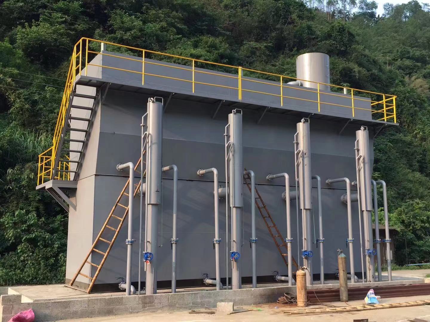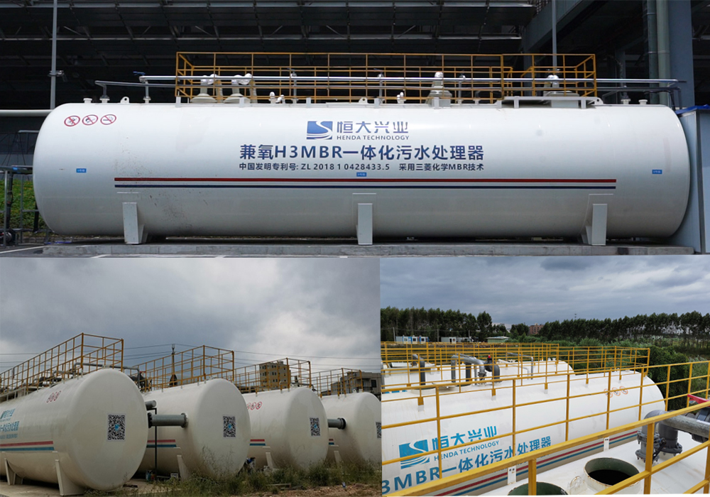 (二)由我司自主研發(fā)的智能兼氧H3MBR一體化污水處理器(中國(guó)發(fā)明專利號(hào):ZL2018 1 0428433.5),采用三菱化學(xué)MBR膜技術(shù),結(jié)合間歇曝氣和間歇進(jìn)水完成脫氮除磷,去除有機(jī)物,并通過三菱化學(xué)MBR膜組件進(jìn)行泥水分離,產(chǎn)水穩(wěn)定達(dá)到一級(jí)A排放標(biāo)準(zhǔn)。主要應(yīng)用于市政污水、產(chǎn)業(yè)園區(qū)污水、方艙醫(yī)院、城鎮(zhèn)新農(nóng)村生活污水等諸多場(chǎng)景生活污水的處理與回用。