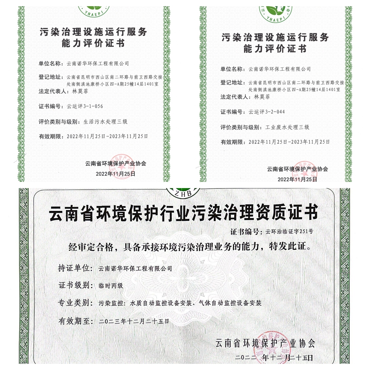 云南諾華環(huán)保工程有限公司成立于2009年8月,公司現(xiàn)有職工50多人,公司主要從事于承接工程建設(shè)業(yè)務(wù);技術(shù)服務(wù)、技術(shù)開(kāi)發(fā)、技術(shù)咨詢、技術(shù)交流、技術(shù)轉(zhuǎn)讓、技術(shù)推廣;工程管理服務(wù);污水處理及其再生利用;公司在環(huán)保設(shè)備的銷售、運(yùn)營(yíng)維護(hù)方面擁有大量業(yè)績(jī)和技術(shù)水平。公司獲得的資質(zhì)證書(shū)有:質(zhì)量管理體系認(rèn)證證書(shū)、職業(yè)健康安全管理體系認(rèn)證證書(shū)、環(huán)境管理體系認(rèn)證證書(shū)、污染治理丙級(jí)證書(shū)、生活污水處理服務(wù)能力評(píng)價(jià)證書(shū)、工業(yè)廢水處理服務(wù)能力評(píng)價(jià)證書(shū)、3A信用等級(jí)證書(shū),公司具備環(huán)保方面的人才與技術(shù)力量,承接相關(guān)專業(yè)的業(yè)務(wù)需求。